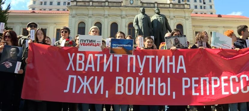 რუსები პუტინის წინააღმდეგ - თბილისში, რუსეთის მოქალაქეებმა საპროტესტო აქცია გამართეს. დემონსტრანტებმა აქციაზე მიიტანეს ბანერები წარწერებით: "პუტინი მკვლელია", "კმარა პუტინის ტყუილები, ომი, რეპრესიები".