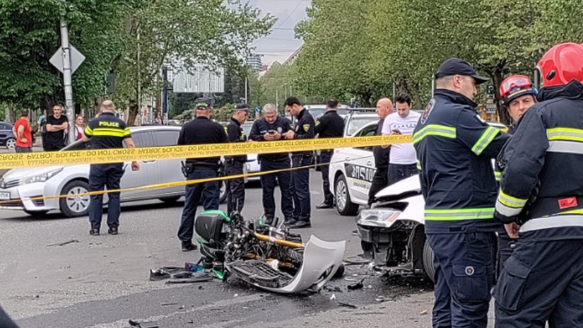 თბილისში ერთმანეთს მსუბუქი ავტომობილი და მოტოციკლი შეეჯახნენ