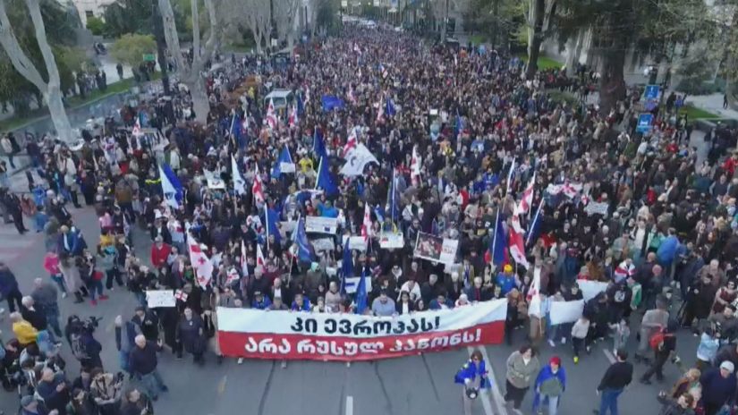 თბილისში საპროტესტო მარში იმართება, რომლის მონაწილეებიც „უცხოური გავლენის გამჭვირვალობის შესახებ“ კანონპროექტს აპროტესტებენ.