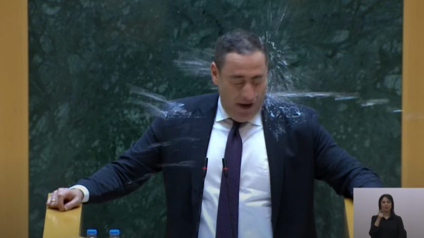 „სტრატეგია აღმაშენებლის“ თავმჯდომარეს, გიორგი ვაშაძეს პარლამენტის პლენარულ სხდომაზე „ქართული ოცნების“ დეპუტატმა, ირმა ზავრადაშვილმა წყალი შეასხა.