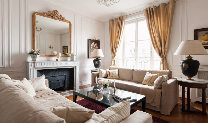 ფრანგული საცხოვრებელი ბინები მაქსიმალურად იყენებს ბუნებრივ განათებას. მაღალი, ფართო ფანჯრები და მინიმალური გადასახურები უზრუნველყოფს მზის შუქის თავისუფალ ნაკადს. ხშირად ფანჯრებს თან ახლავს მსუბუქი ფარდები ან ჟალუზები, რომლებიც ერთდროულად პრაქტიკულიცაა და ესთეტიკურად მიმზიდველიც.
