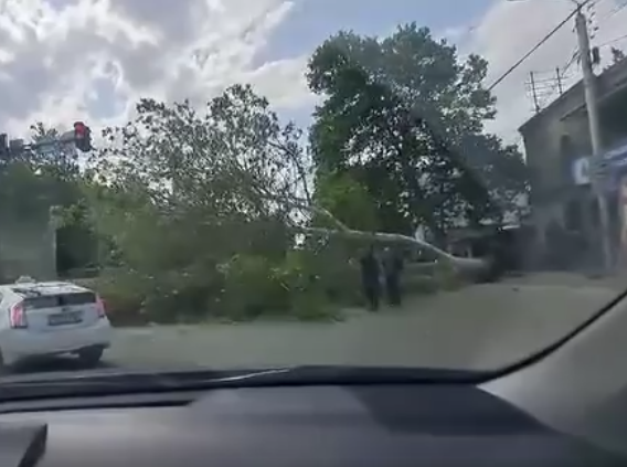 სამგორში ქარმა ხე მოგლიჯა და გზაზე რამდენიმე მანქანას დაეცა (ვიდეო)