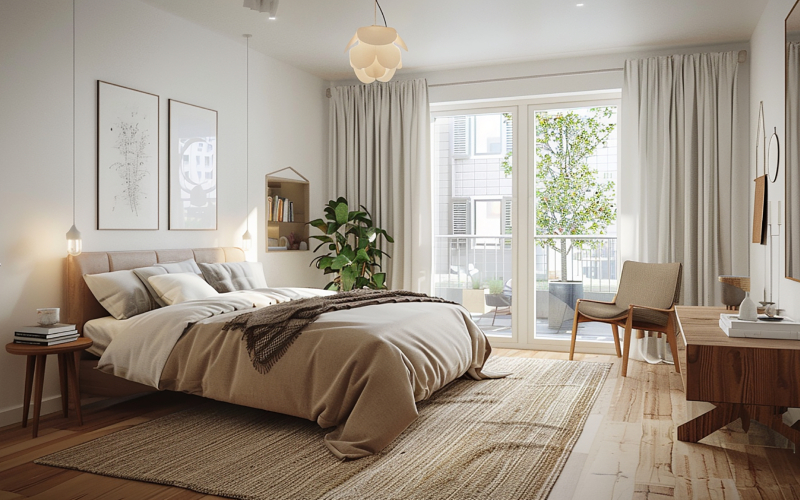 მიუხედავად მდებარეობისა, შეარჩიე ბუნებრივი მასალები — ბამბა, თეთრი, ხე, თბილი რბილი ხალიჩები. დაამატე მცენარეები (მაგ. ლავანდა ან სანსევიერია), რომლებიც წმენდენ ჰაერს და ამშვიდებენ გარემოს.