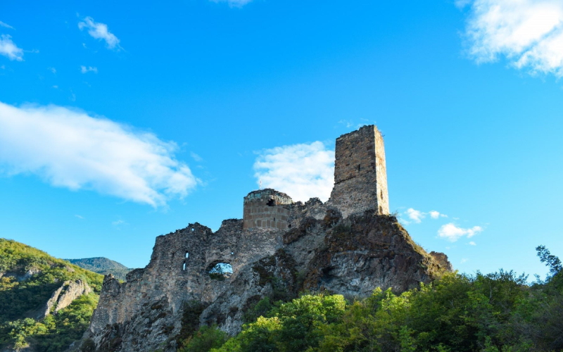 სასახლე სოფელ ლამისყანაში, მდინარე ქსნის მარჯვენა ნაპირზე, მაღალი ბორცვის ფერდობზე, ანტიკური ხანის ნამოსახლარზე. სასახლე წარმოადგენს კომპლექსურ ნაგებობას, რომლის შემადგენლობაშიც შედის: ციხე-გალავანი, სასახლე, მარანი და სხვა სამეურნეო ნაგებობანი. ციხე-გალავანს მოხერხებული მდებარეობა აქვს: აქედან კარგად ჩანს ქსნის ხეობის დიდი მონაკვეთი და იქ განლაგებული სოფლები და ციხეები. ჩრდილო-აღმოსავლეთით მოჩანს ქალაქი ახალგორი - ქსნის ერისთავების რეზიდენცია. სავარაუდოა ციხე-გალავანი ქსნის ერისთავის ან მისი ოჯახის რომელიმე წევრის დაკვეთითაა აგებული (მშენებლობის შესახებ ცნობები არ არის შემორჩენილი). თარიღდება XVIII საუკუნით; XIX საუკუნეში გალავნის სამხრეთ ნაწილი სასახლის ნაგებობაში ჩაურთავთ და გადაუკეთებიათ მის ერთ-ერთ კედლად.