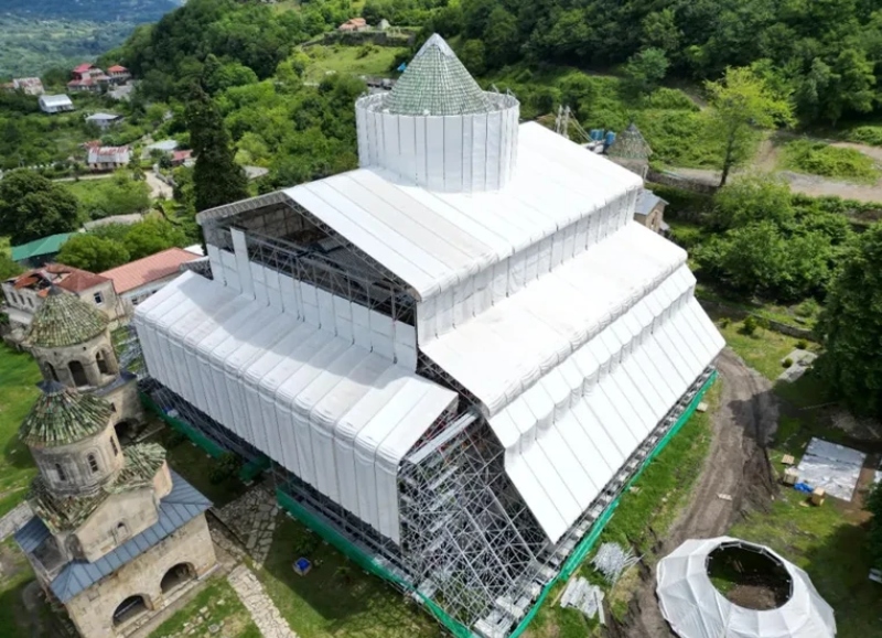 გელათის მთავარი ტაძრის ერთიანი დროებითი გადახურვის სამუშაოები სრულდება - საპატრიარქო