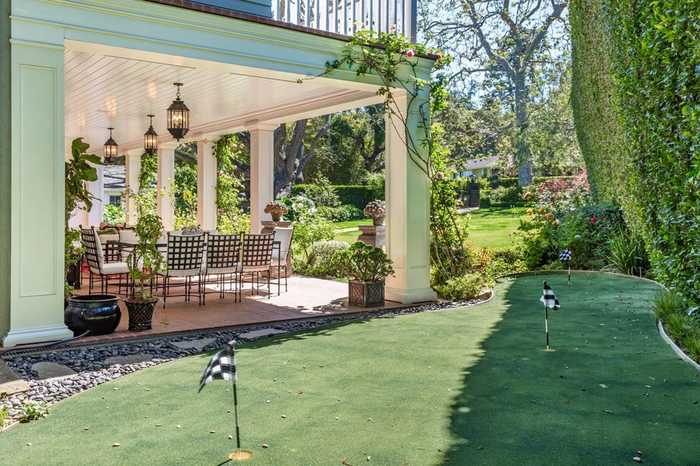 ზედა სართულზე მდებარე მთავარი საძინებელი თითქმის დამოუკიდებელი საცხოვრებელია — ორი, სპას ტოლფასი აბაზანით, უზარმაზარი გარდერობის ოთახებითა და აივნით, რომელიც ვარდისფერ-მომწვანო ეზოს გადაჰყურებს. ქვემო სართულზე განთავსებულია საოჯახო ოთახი და სტუმრისათვის განკუთვნილი საძინებელი, რომელიც იდეალურია როგორც მუდმივად მცხოვრები დამხმარე პერსონალისთვის, ისე ძალიან იღბლიანი ნათესავებისთვის. ცხადია, უკანა ეზოში საცურაო აუზი და პატარა გოლფის მოედანიცაა განთავსებული, რატომაც არა?
