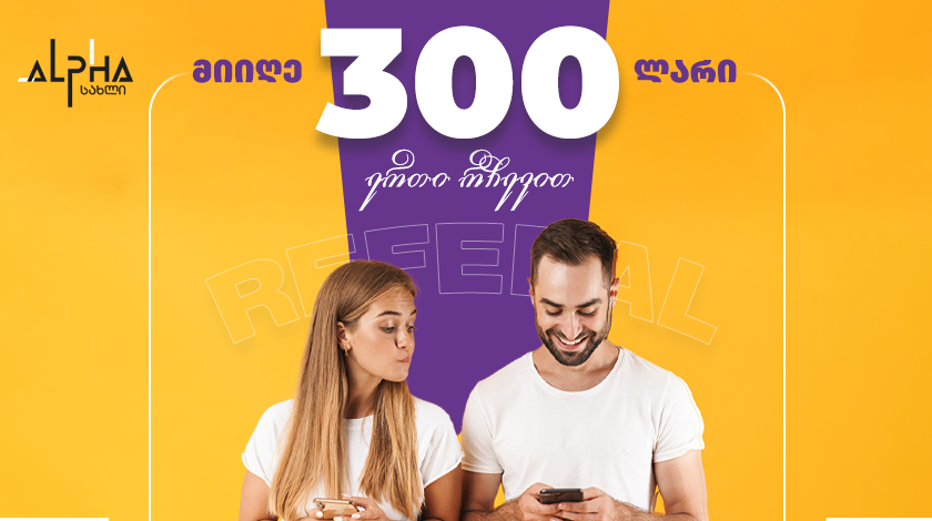 მიიღე 300 ლარი - ჩაერთე "ალფა სახლის“ რეფერალ სისტემაში