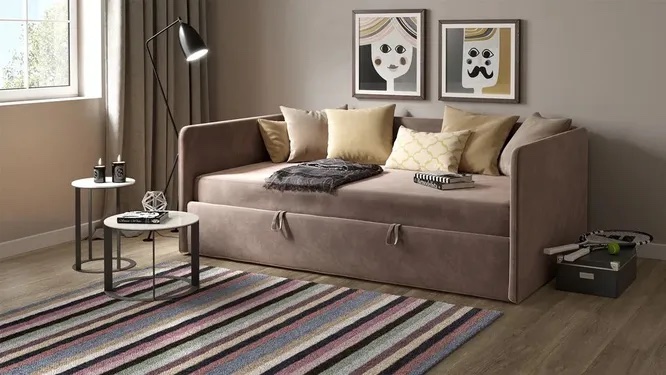 აქტუალურია გასაშლელი დივანი (რბილი ზურგით - დღისით დივანი, ღამით საწოლი), ტრანსფორმერის მოდელები, ნეიტრალური დიზაინი: მშვიდი ბუნებრივი ტონები - კრემისფერი, ტერაკოტა, მწვანე, ხის ტექსტურები.