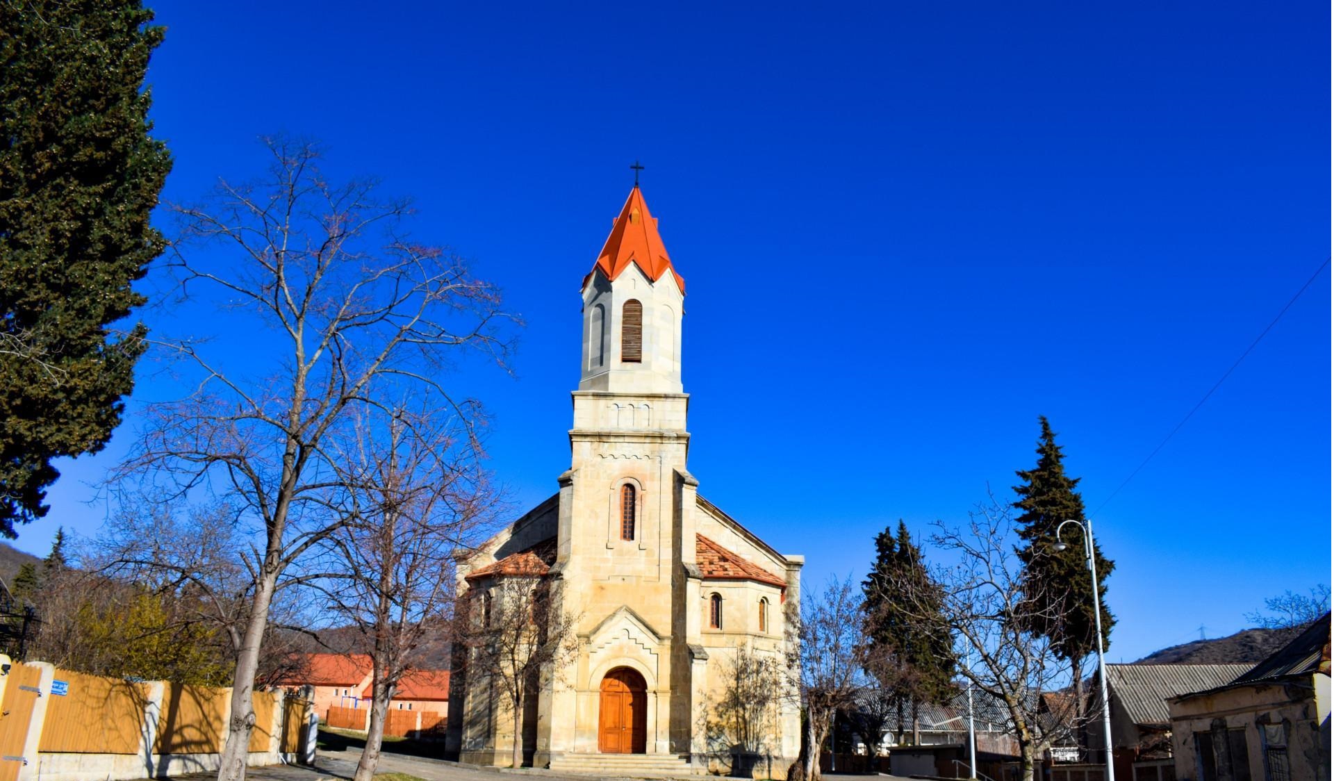 ტაძარი აგებულია 1871 წელს რუსეთის იმპერიის მიერ ჩამოსახლებული გერმანელი შვაბების მიერ. გერმანული მოსახლეობა მეორე მსოფლიო ომის დროს იქნა გასახლებული ცენტრალურ აზიაში.