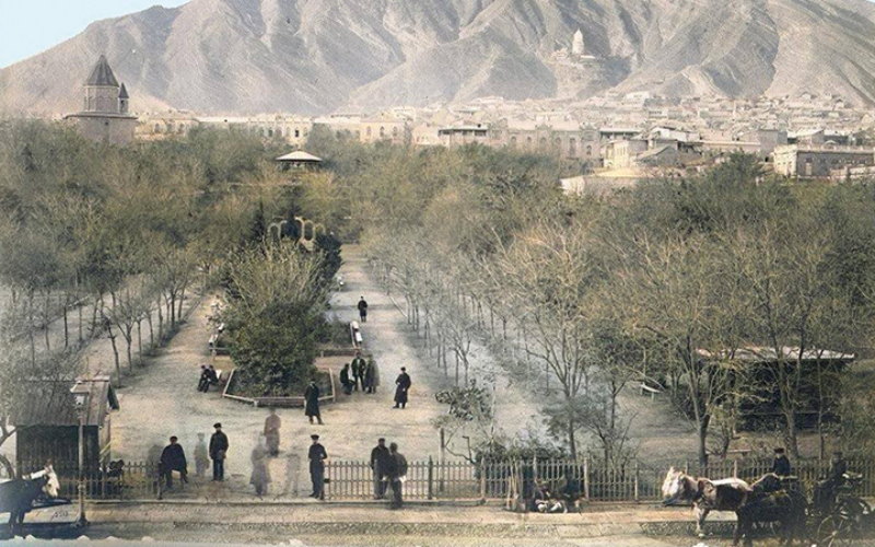 XIX ს. შუა ხანებში ძველი ყაბახის ტერიტორიაზე რუსულმა ადმინისტრაციამ მოაწყო სამხედრო პლაცი, რომელსაც იმპერატორ ალექსანდრე II-ის სახელი ეწოდა („ალექსანდრეს პლაცი“). 1859 წ. საფუძველი ჩაეყარა ფერდობზე გაშლილ საზოგადოებრივ ბაღს, რომელიც საზეიმოდ 1865 წ. გაიხსნა და ალექსანდრეს სახელი შეუნარჩუნდა.