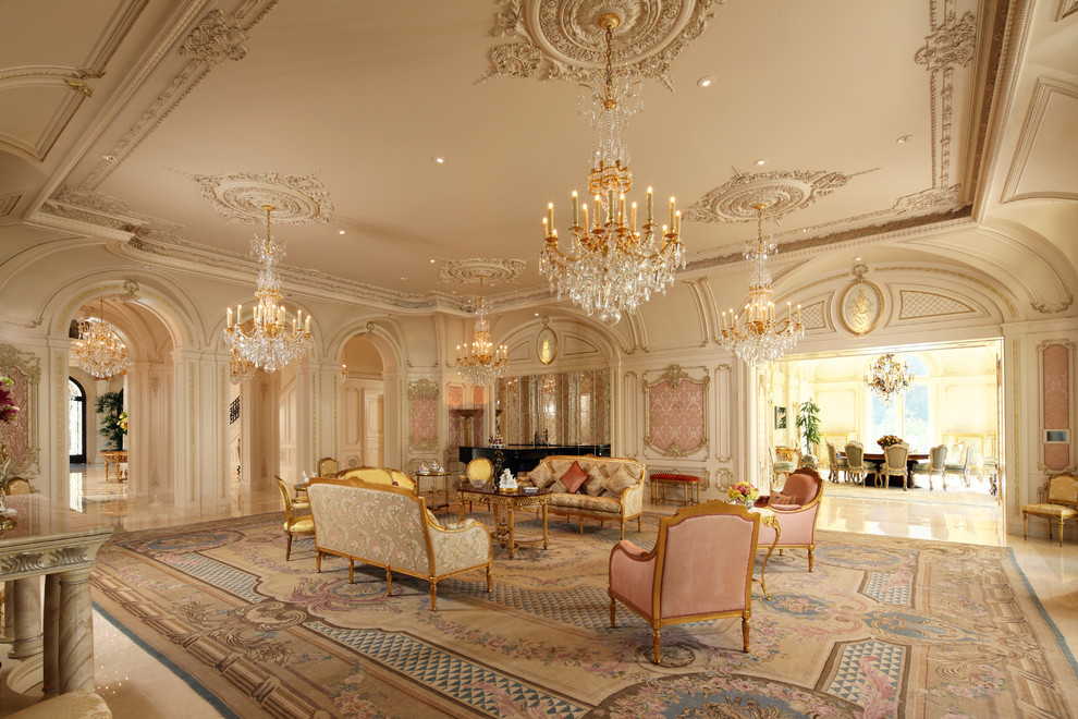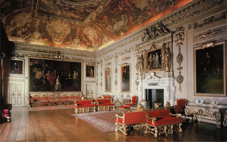 - რთული ორნამენტები, ოქროსფერი დეკორი, მოხატული ჭერები;