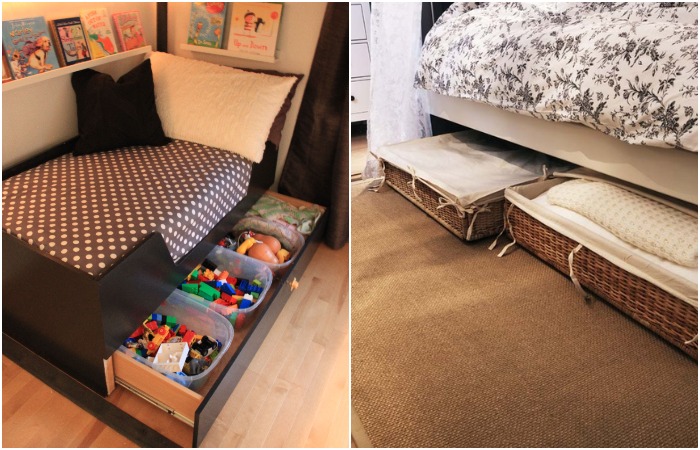 გამოიყენეთ საწოლის ქვეშ არსებული სივრცე