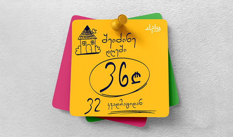 "ალფა სახლის" ინოვაციური შიდა განვადების სისტემა საშუალებას გაძლევს დაიწყო დღეში მხოლოდ 36 ლარიდან.