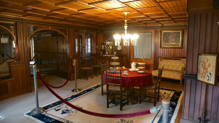თუ ფიქრობთ, რომ ყველა ოთახი ერთმანეთს ჰგავს, ძალიან ცდებით. მაგალითად, მისაღები დარბაზი მთლიანად წითელი ხით არის მოპირკეთებული, ერთ-ერთი საძინებელი კი შპალერით. ბევრ ოთახს ჰქონდა ვიტრაჟები, რომლებიც დღემდეა შემორჩენილი (ზოგიერთი მათგანი იატაკშიც კი არის ჩაშენებული).