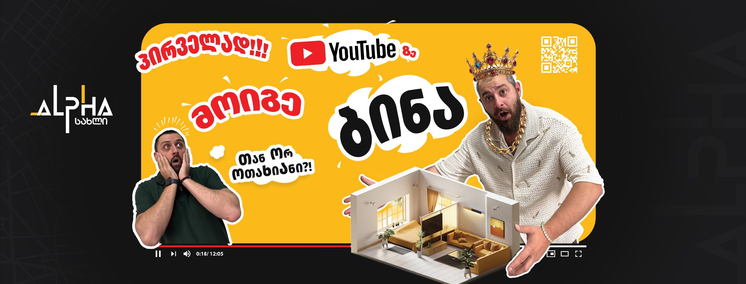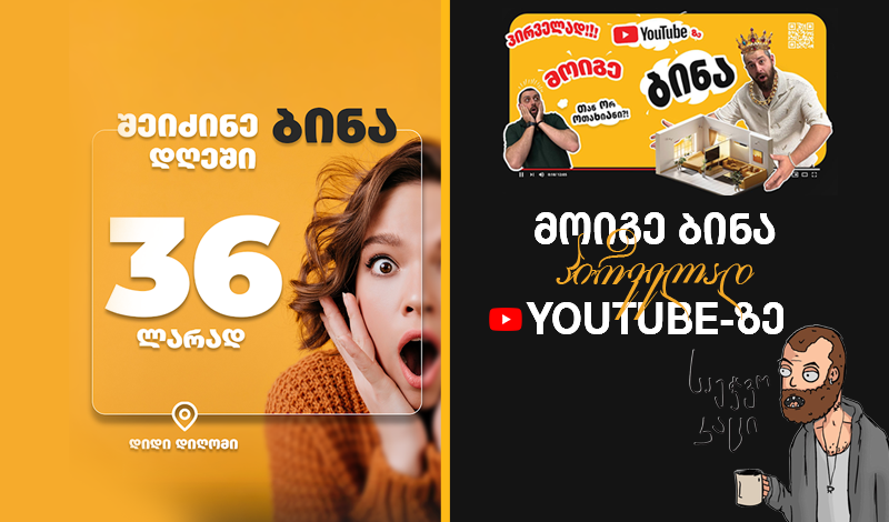 54 კვ.მ ბინა - გათამაშება YouTube-ზე და დღეში 36 ლარად შენს სახლში!