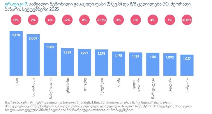 როგორც "თიბისი კაპიტალი" წერს, 2025 წლის სექტემბერში, გასაყიდი ფასი გასული წლის იმავე თვესთან შედარებით 3%-ით გაიზარდა და 1284 დოლარს გაუტოლდა. ხოლო წინა თვესთან შედარებით, ფაქტობრივად, უცვლელი დარჩა.