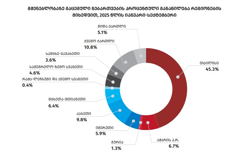 აღსანიშნავია, რომ 2025 წლის იანვარ-სექტემბერში ნებართვები გაიცა მრავალფუნქციური საცხოვრებელი კომპლექსების, სავაჭრო ობიექტების, სასტუმროების, სამრეწველო საწარმოების, სასოფლო-სამეურნეო დანიშნულების ობიექტებისა და სხვა შენობა-ნაგებობების მშენებლობაზე.