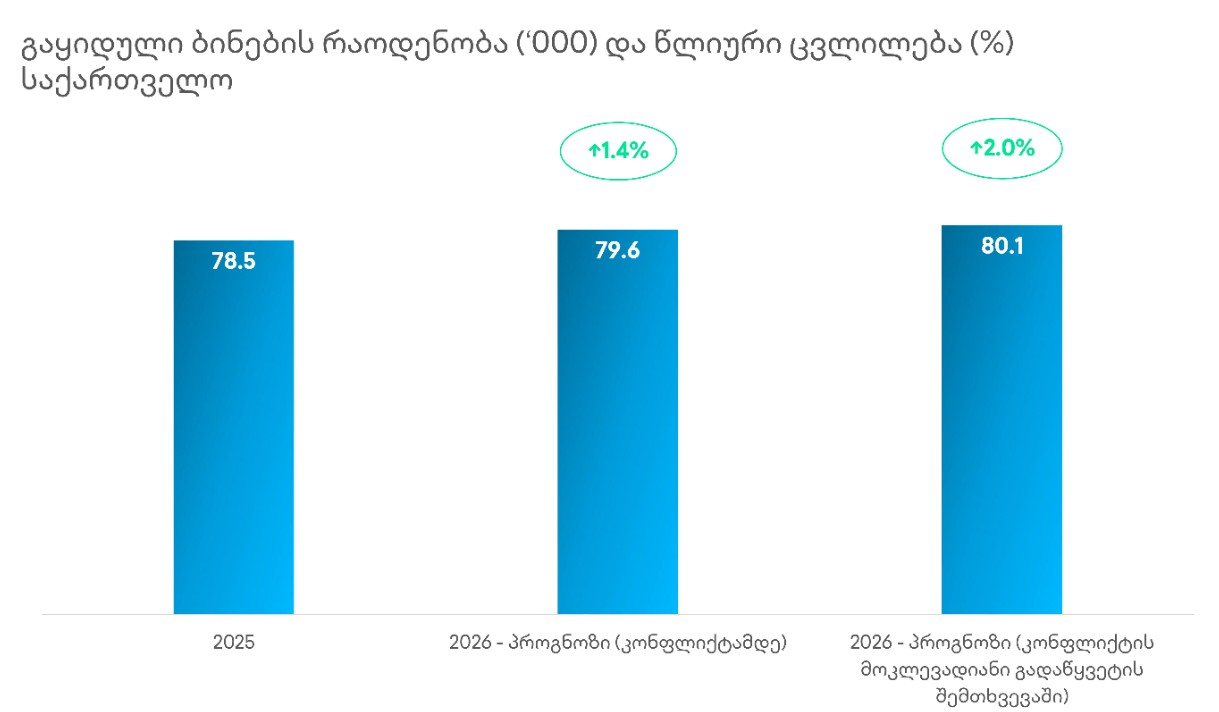 „იმ შემთხვევაში თუ კონფლიქტი მოკლევადიან პერიოდში დასრულდება, შესაძლოა, 2026 წელი უძრავი ქონების ბაზრისთვის უფრო პოზიტიური აღმოჩნდეს, ვიდრე ეს კონფლიქტამდე არსებულ საბაზისო სცენარში იყო გათვალისწინებული. ეს ძირითადად ახლო აღმოსავლეთიდან პოტენციური მიგრაციით შეიძლება იყოს გამოწვეული, რაც დადებითად იმოქმედებს უძრავი ქონების მოთხოვნაზე, როგორც გაქირავების, ისე გაყიდვების კუთხით.
