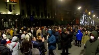 რუსთაველის გამზირზე გზა გადაიკეტა - პარლამენტის წინ მოქალაქეები იკრიბებიან