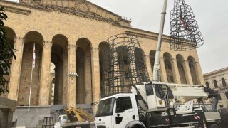 პარლამენტთან ნაძვის ხეს აწყობენ