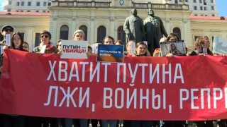 "პუტინი მკვლელია", "კმარა პუტინის ტყუილები, ომი, რეპრესიები" - თბილისში მცხოვრებმა რუსებმა აქცია გამართეს
